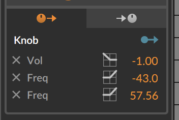 And because these are Bitwig remote controls, one knob can control multiple params in different places. E.g. crossfade between two textures, and add filter / distortion in the top half of the knob range.